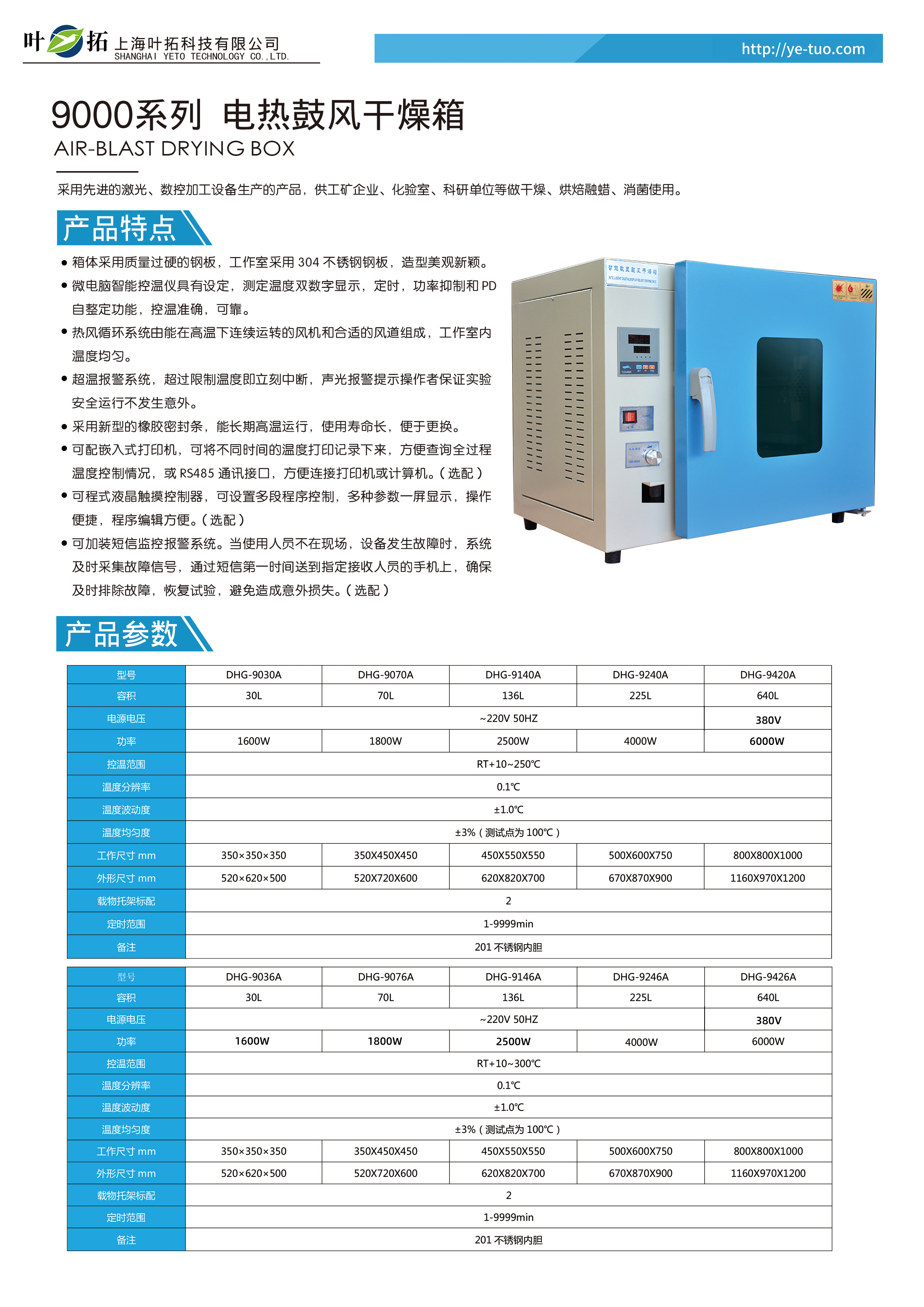 葉拓DHG系列電熱鼓風干燥箱產品特點
